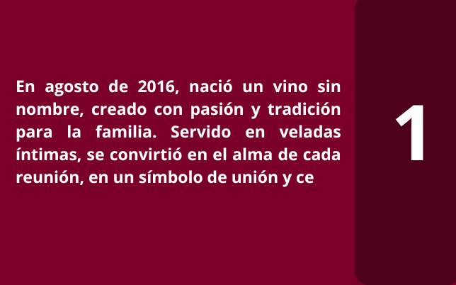 En agosto de 2016, nació un vino sin nombre, creado con pasión y tradición para la familia. Servido en veladas íntimas, se convirtió en el alma de cada reunión, en un símbolo de unión y celebración. Fue la gente del pueblo quien le dio identidad. "Don Fernando", un nombre que resonaba con porte, elegancia y serenidad. Un tributo al abuelo, un homenaje a la historia que nos une.